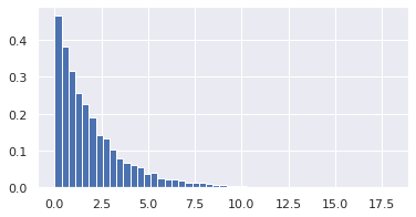 _ = ax.hist(samples_t_exp, bins=bins, density=True)この結果は以下のようになります。