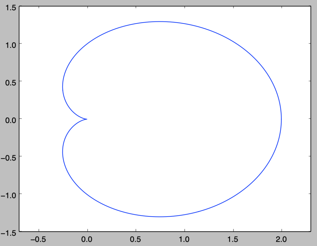 上図は$a=1$で計算したので、図の曲線の長さは$l(C)=8$に対応する。半径$1$の円周の長さは$2 \pi = 6.28…$より、ここで取り扱ったカージオイドは半径$1$の円の円周より長いことが確認できる。このことは図からも大まかに読み取れる。